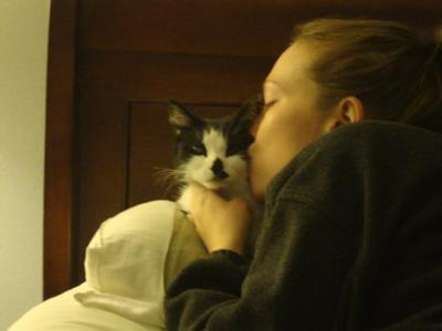 A little over a year ago, we had a scare when Callie contracted Giardia. The vet also found a mass on her liver but found it non-cancerous. I was about to leave on my honeymoon when she fell ill, which tore me apart. I hired a vet tech to stay with her and give her medicine as she was in really bad shape. I was so afraid of coming home to find that she had left me. But to everyone's surprise, she pulled through. It was like she was a new cat and she loved life. I was over joyed that my baby was ok.