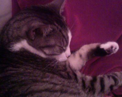 She will lay in every spot Suzy did, with the exception of two places. The cat bed in the bedroom, which was always covered with the blanket, and the stool at the end of the papasan chair… She won’t lay on that either… It’s almost like she knows those were Suzy’s special places and is, I think, avoiding those because I guess maybe she figures one night at 3 in the morning she’ll stumble upon her….