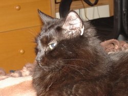 My sweet Whisk, It has been just a little over 1 month and you are still on my mind. I know you are in a better place but I still wish you were here with me. I was thinking how silly you were. remember, everytime I bought a new donut bed, you would be the first to jump in and start sucking and kneading. You sucked one so hard it was all the way down to the stuffing! Silly Girl! I sure miss you kneading my tummy. I try to imaging you when I look at Prin, but there is no resemblence other than your long black fur. Please help my broken heart to heal. Let me know you you are ok. Please let me feel you gently brush against my cheek at night to help me sleep. Let me feel your wet nose on my lips for a kiss. I love you Whisk and I will never forget you for as long as I live.