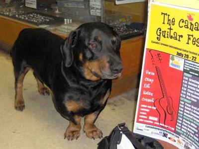 For almost 11 years, since I first saw him, a Dachshund Rotweiler mix, at 4 weeks and picked him up at 8, we were together night and day, at home and at work. At 8 weeks he started spending all day at the store, meeting and greeting customers, sometimes even when he was too tired to. Several times he got he got stepped on and often had little kids pull on his tail, but he took it in his stride as simply part of the job.