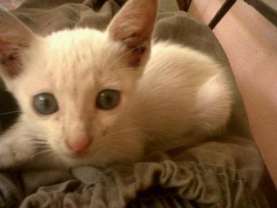 I fell in love with her nice white fur and crystal blue eyes. I got so excited I bought three packs of whiskas and a bag of cat litter.