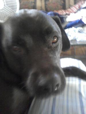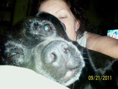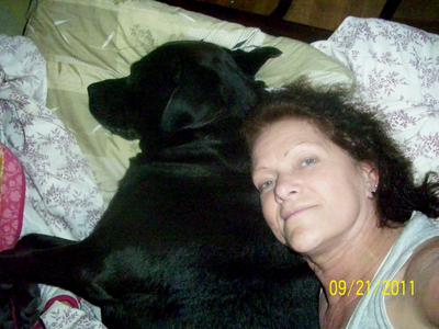 Tina Jane Turner is a Pitt/Lab mix. She came into my life in September of 2002. She was an abused eight week old puppy who now weighs in at a healthy 89.7 pounds. I had just pulled up in front of my house after work one day. There were four teenage boys that were throwing something black into my front shrubs, which I thought was a black plastic bag.