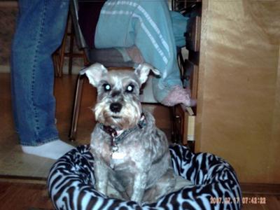 Earlier this year we discovered she had a heart problem after she began throwing up and very heavy breathing. The vet told us to not let her run around or get very excited because she could have a heart attack. They put her on meds. and we knew it wasn't good. But she began to feel better and become her old self again. She would jump up on my chest and rest her nose on my shoulder it was so sweet. That was her way of loving and she had a lot to give.