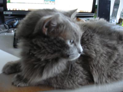 You were the last one in your litter to be adopted. I can't imagine why. You were so cute, a little grey furball with a grey nose. As soon as you approached me you started purring and climbed up on me. That was it. That's all it took.