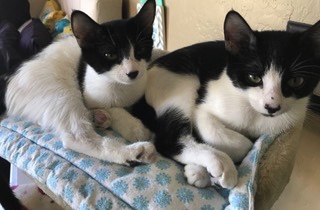 I found my babies, Sophie and Shansa, when they were around 5 weeks old. My brother, a security guard, had fed their feral mommy at one of his properties for months under the assumption she was a he, Hans. When she disappeared for a week and popped back up with babies, he continued to support mommy with food.